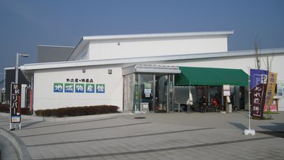 特産品直売所は、わりと広く、半分以上が野菜や花だが、観光みやげ物もいろいろある。地酒や地ワインもあり、「忠敬」という日本酒はおいしかった。弁当などの総菜類が豊富なのも印象的。米も売っていて、なにげに美少女のイラストが描かれていた。「ふさおとめ」というらしい。