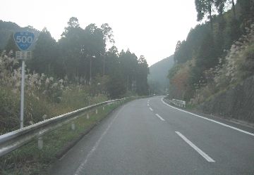 山中の道ながら、広めの2車線道で、よく走れる道。(右写真)