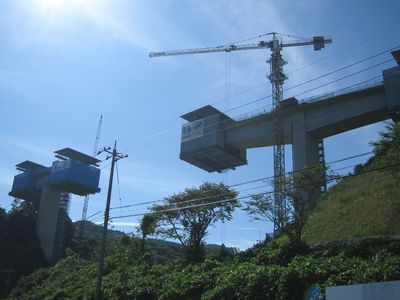県道に入るとすぐ、右上に大きな橋を工事中で、大谷大橋とのこと。(右写真)