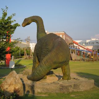 東端には、おどけた恐竜の頭のついた、大きな遊具があった。