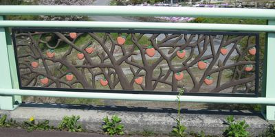欄干には、リンゴ、ナシ、カキのレリーフで、ほかの橋と同じ。